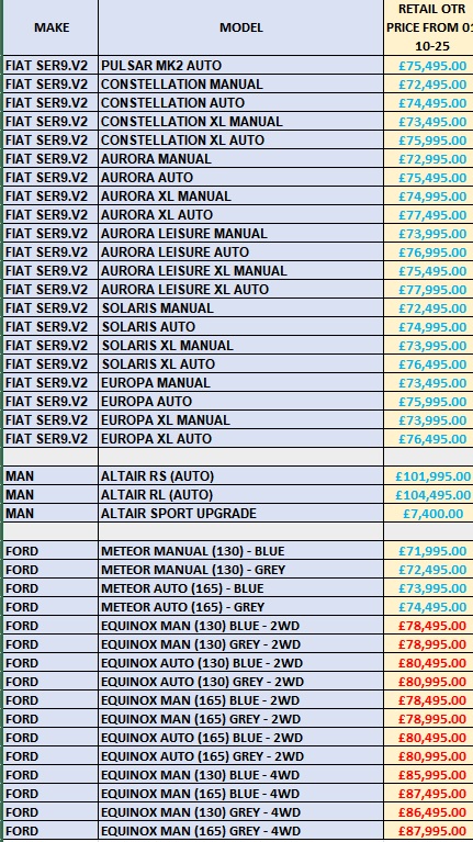 At WildAx Motorhomes our research and development team constantly work with an aim to improve our motorhomes often using feedback from our customers to guide our designs. As such due to this and availability of parts the specification of our motorhomes may change from that advertised on this website.